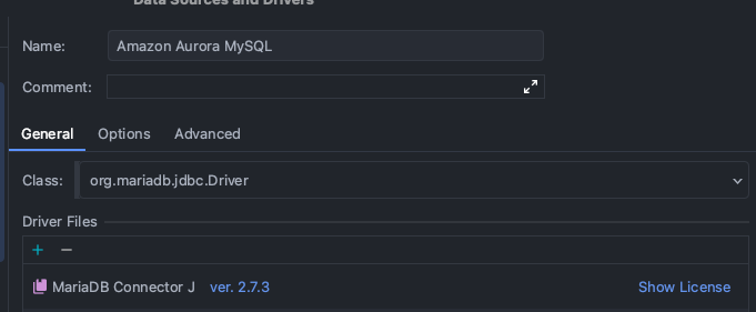 그렇기 때문에 아래 사진처럼 Amazon Aurora MySQL Driver Version을 2.7.X로 변경해주어야 한다.