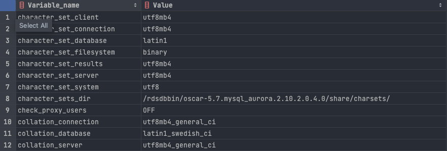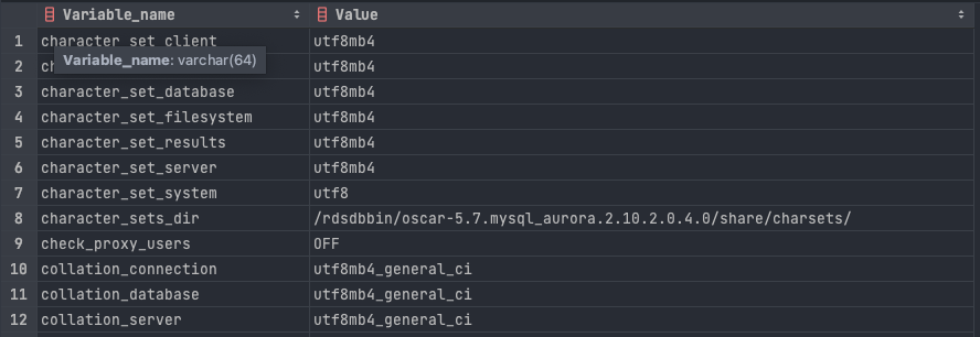 다만, character_set_database와 collation_database는 바뀌지 않았다. 따로 수정해주어야 한다.