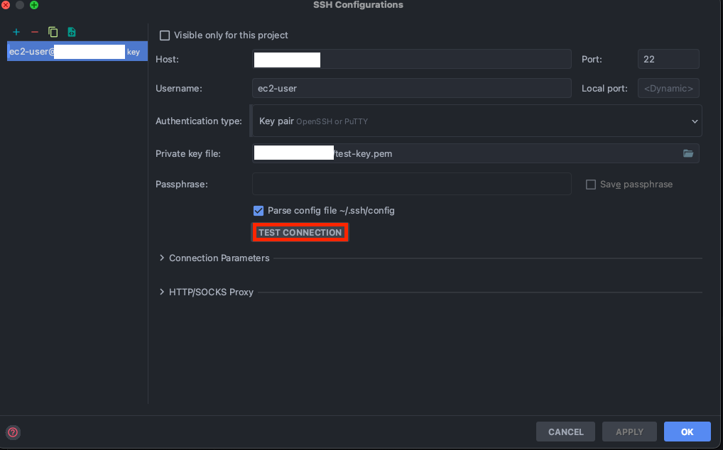 1. SSH Hostname : 배스천 호스트의 IP와 SSH 포트인 :22 를 입력2. SSH Username: 보통 ec2-user