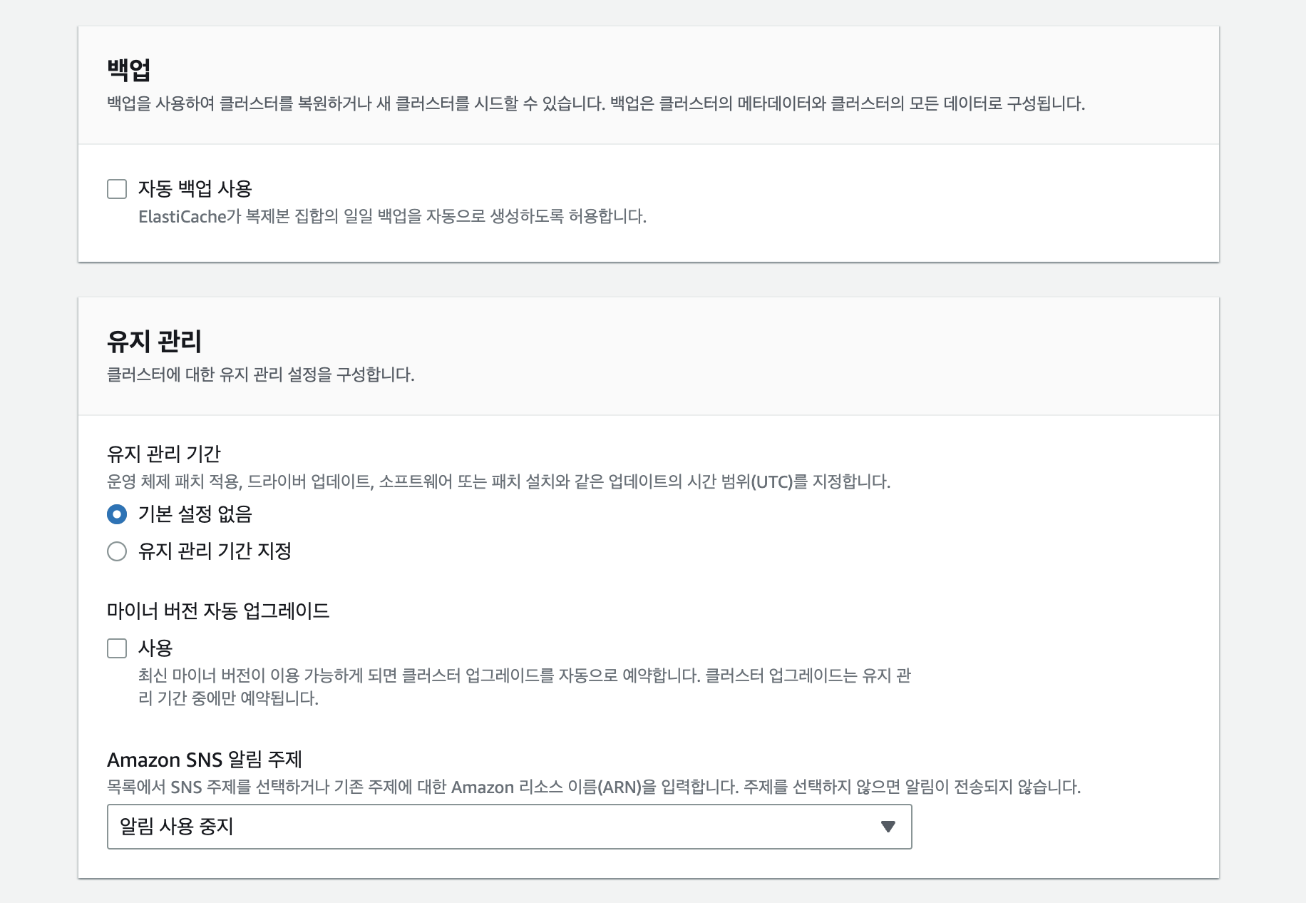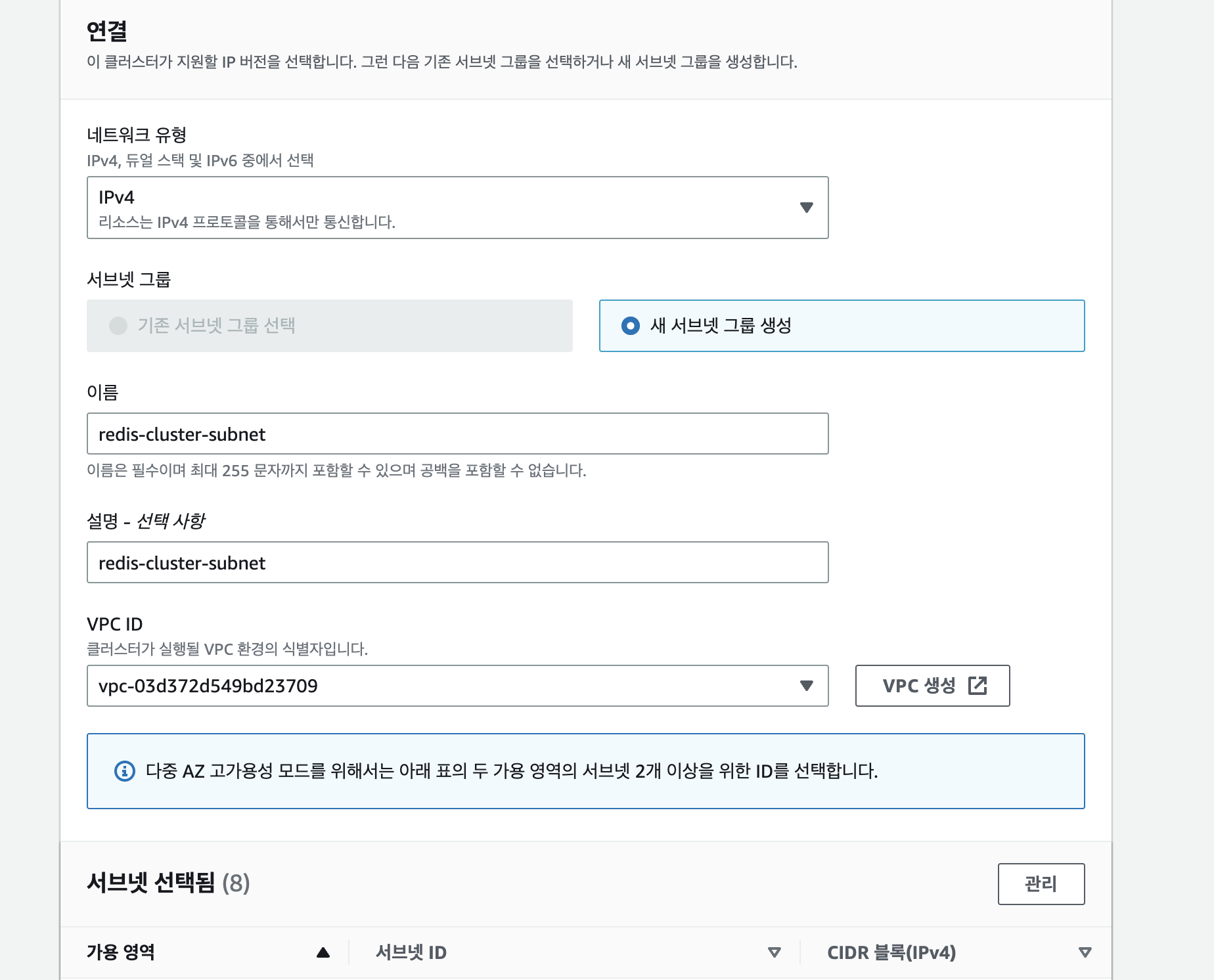 우리는 '싱글 클러스터 모드' 이기 때문에 다중 AZ와 자동 장애조치는 사용할 수 없다.