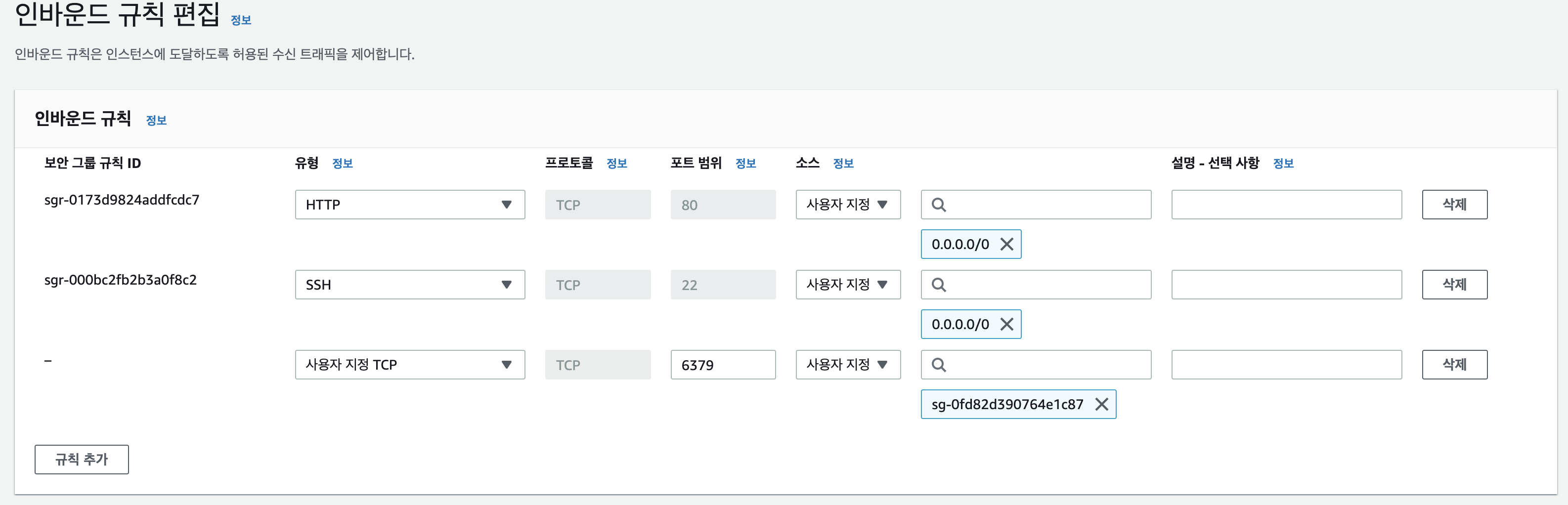 3가지의 보안그룹을 추가해준다.