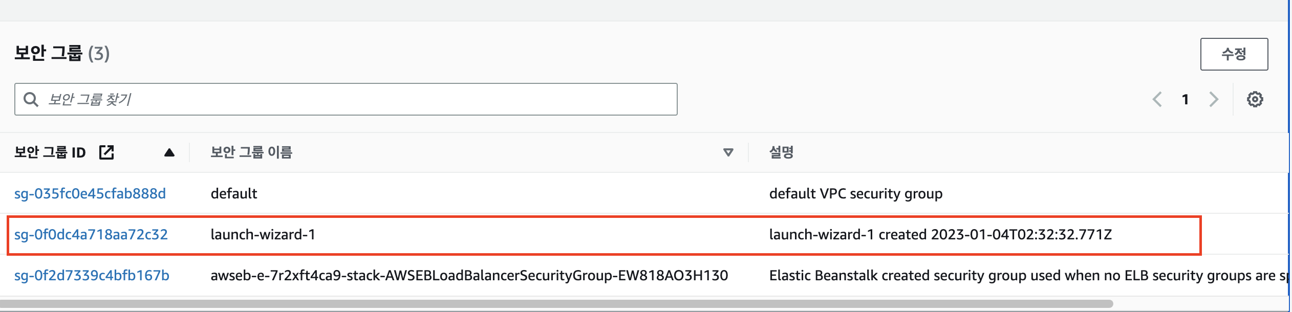 EB EC2 보안그룹 수정하기