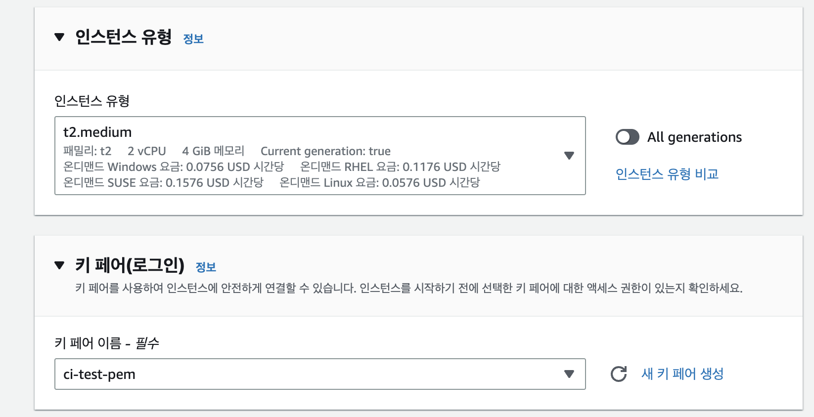 - ssh -i "ci-test-pem.pem" ec2-user@{Your ec2-address}.ap-northeast-2.compute.amazonaws.com