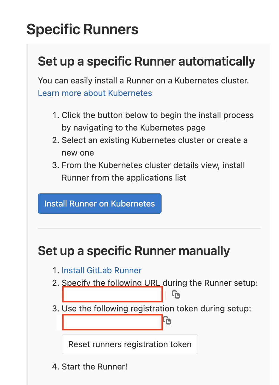Registration Token: Gitlab CI/CD Page에 있는 Set up a specific Runner Manually Token을 입력합니다.