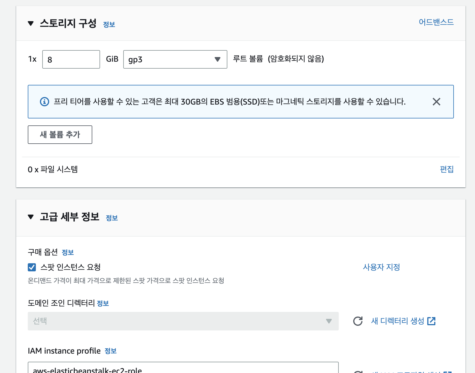 * 주의 : 스팟 인스턴스는 위에서 설명한 기준을 초과하면 인스턴스가 종료될 수도 있으니,스냅샷을 찍어놓거나 하는 백업 방안이 필요합니다.