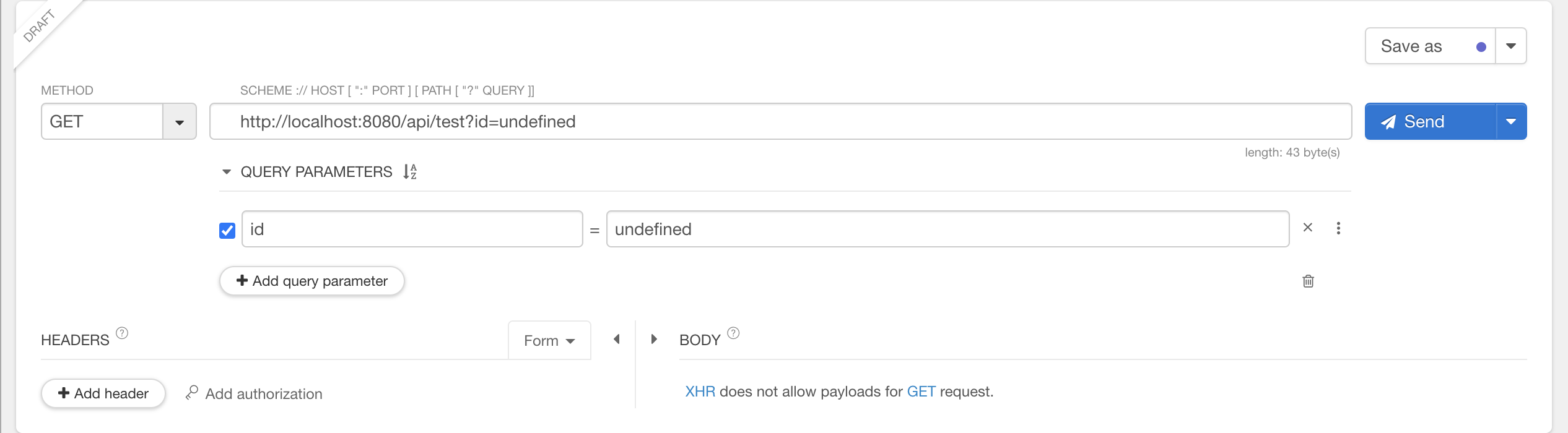 Talend API Tester로 해당 API의 id query parameter에 "undefined" 라는 String 값을 붙여서 호출 합니다.