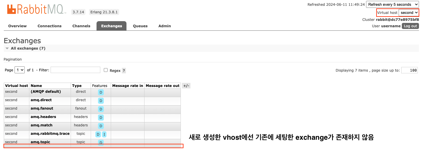 - 여러 애플리케이션 또는 서비스를 운영하고자 할 때 가상 호스트를 사용하여 각각의 메시지 브로커를 독립적으로 관리 할 수 있습니다.