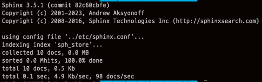 💡 만약 searchd가 실행중인 경우, indexer 실행시 --rotate 옵션을 추가해줘야 합니다.