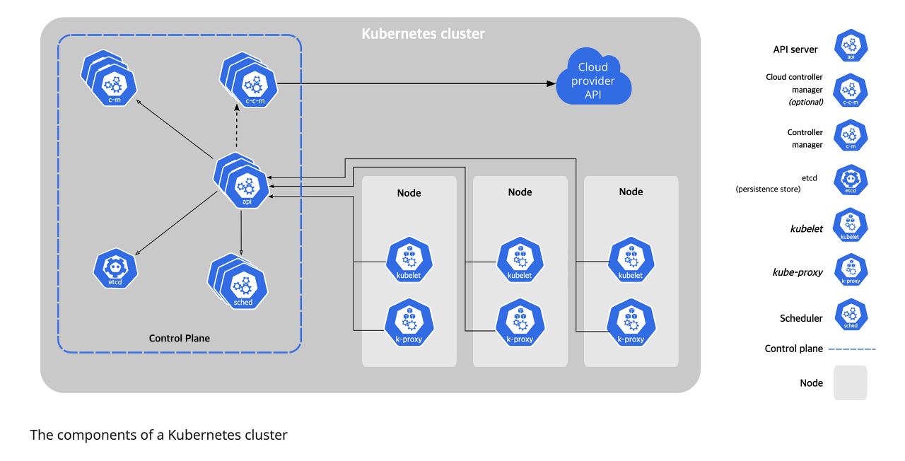 ์ด๋ ํด๋ฌ์คํฐ ์ ์ฒด๋ฅผ ๊ด๋ฆฌํ๋ ์ปจํธ๋กค๋ฌ๋ก์ ๋ง์คํฐ๊ฐ ์กด์ฌํ๊ณ , ์ปจํ ์ด๋๊ฐ ๋ฐฐํฌ๋๋ ๋ฌผ๋ฆฌ์ ์ธ ๋จธ์ ์ ๋ ธ๋๋ผ๊ณ ํ๋ค.